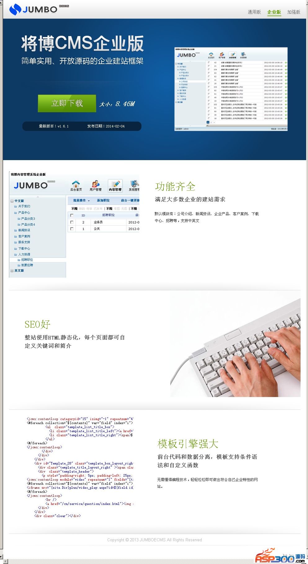 JumboECMS是针对企业用户专门改写的基于JumboTCMS的一个版本。
