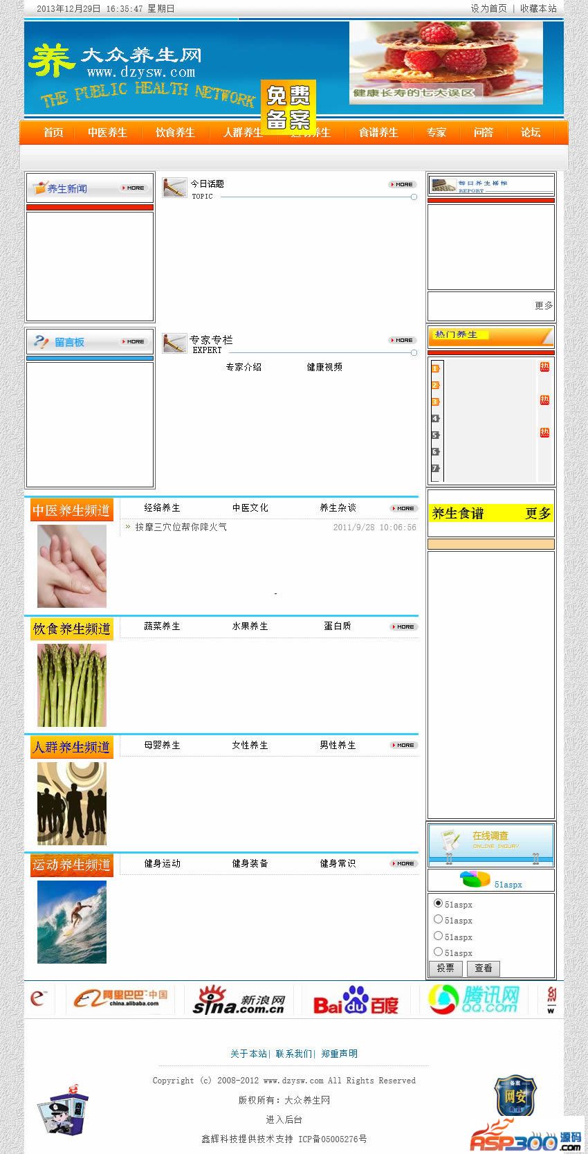 中医养生,饮食养生,人群养生,运动养生,食谱养生,问答,论坛等。