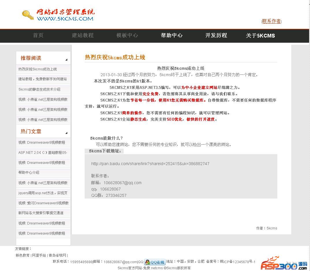 5KCMS之K1采用ASP.NET3.5编写,可以为中小企业建立网站尽绵薄之力。