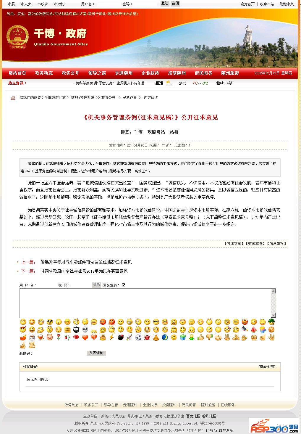 千博政府网站管理系统是一款基于微软 .Net 2.0平台的集安全、稳定、灵活、易用、可扩展性于一身的新型政府网站管理系统。作为千博产品家族中的一员,政府网站管理系统能够出色的实现各种政府门户网站和政府电子政务应用需求。
