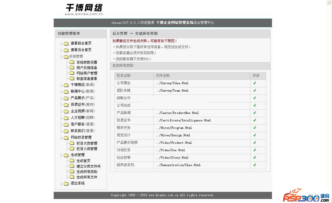 千博企业网站管理系统个人版免费下载、免费使用、功能无限制,完全免费拥有(请尊重开发者版权,保留首页底部版权显示):内含Flash动画源码、Access数据库程序包、SQL数据库程序包。
