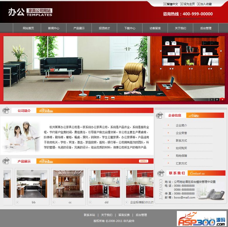 漂亮的家具网站模板。全站主题分明,分类合理,独特的产,购,销,售后一条龙服务彰显本站的贴心设计。红色的背景喜气与活泼,配以黑色的沙发不失于稳重,书柜,围体的办公桌和大气的老板椅尽显霸气。