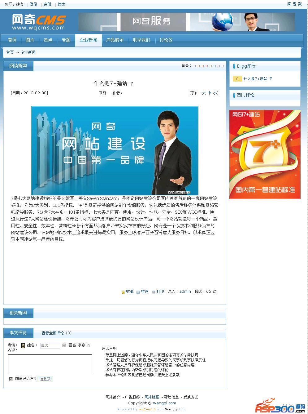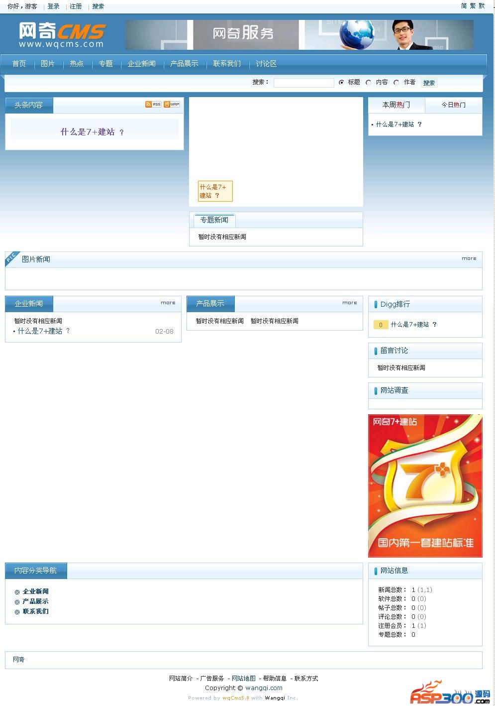 网奇CMS网站管理系统是以.net进行开发的内容管理系统,可用于建设新闻类和文章类网站系统。网奇CMS网站管理系统6.0百项功能一览:1.使用全球通用的utf-8编码,符合国际标准2.支持百万级的数据运行3.提供系统统计信息,包括登陆记录,工作排行,运行状态,信息数目等4.网站logo可在后台修改,栏目可设置单独logo5.可设置关键字和描述,让搜索引擎更好的了解网站6.栏目和内容均可填写seo标题,使优化更方便7.提供RSS订阅功能,并可设置是否全文订阅8.拥有用户整合接口,可实现跨站会员整合,如注册、修改、登陆、退出、删除、取资料9.讨论区功能,可用作小型论坛,用户讨论等10.留言本功能,可用作访客留言,在线解答等11.友情链接功能,可设置分类,可区分图片链接和文字链接12.可设置申请友情链接,并有审核友链功能13.采用模板机制,可随意添加/修改/导入网站风格14.提供几十种内置模板,栏目页/内容页可绑定不同模板15.模板采用语义化编写,代码精简,样式清晰16.前台输出代码符合标准,兼容性强17.可设置列表页显示内容数量18.内容可设置倒序/正序显示19.可自动提取第一张图片标题图片20.标题图片,头条标题图片,幻灯片图片大小均可自定义设置21.可为图片增加水印,尊重版权22.下载功能,可上传软件23.时间日期可自定义显示格式24.可自动下载站外图片和flash25.搜索可设置权限,如限会员搜索,只可搜索标题等26.会员可审核注册,验证邮箱27.后台可直接添加会员28.会员可设置有效期29.会员间拥有站内消息功能30.会员/非会员可按栏目推荐新闻31.会员拥有积分和虚拟货币功能32.会员拥有会员组功能,新闻可限制会员组阅读33.会员可通过QQ,sina等平台注册和登陆34.管理系统分为系统管理员和新闻管理员35.新闻管理员可按栏目分配添加/修改/审核权限36.可设置GZIP压缩,提高网站速度37.模拟静态,自定义后缀名38.生成静态页面,并可定义生成速度39.防盗链,保护网站流量40.可设置上传文件格式,保护网站安全41.网站/栏目可按IP限制/阻止访问42.网站内置广告位,不同栏目可绑定不同的广告,并可一次更换整站广告43.可切换简体/繁体,并可设置默认语言44.支持语言包45.网站内容评论功能,可设置是否审核/仅限会员等46.对于智能手机访问网站用户,会直接跳转至触屏手机版本47.手机版本采用模板机制,可按栏目绑定不同模板48.手机版本可设置独立的logo和底部信息49.手机版本采用html5编写,语义化代码50.手机版本与网站数据通用51.可备份数据库和文件52.可以管理上传的文件53.内容采集功能,采集规则可导入导出54.采集支持多种网站编码,并可繁简转换55.采集参数可自定义56.可24小时无职守采集57.可采集会员和数据库58.可自动下载采集的站外图片59.多个广告可按权重在广告位内随机显示60.内置多种广告效果,如果漂浮,对联,背投等61.广告可按js或iframe两种方式调用62.可按栏目发布公告63.有调查功能,新闻内可直接插入调查64.代码插件,方便备案号,统计代码等代码的后台填写65.分类可实现无限级分类66.分类可设置是否在导航显示67.可以批量添加分类68.分类可自定义静态目录69.分类可以添加站外链接,链接到任意地址70.分类可设置分类简介,便于模板制作71.可拖动改变分类顺序72.分类属性可批量维护73.分类可以绑定自定义字段74.分类可以添加rss地址,从而可以在网站显示任意提供rss的网站的最新内容75.拥有新闻专题功能,添加内容的时候可同时选择所属专题76.可根据标题关键字批量生成专题77.单页功能,适用于关于我们,联系我们等页面78.每个单页都是独立页面,可用修改模板的方法随意修改79.单页拥有系统内置广告位80.内容可选择标题颜色81.内置标题图标,如多图,热门等82.附件和图片上传,可提取图片元数据83.可以上传多图内容,并有对应模板展示84.可在内容中插入附件85.内容可以插入分页,并拥有分页标题86.内容可设置头条和固定87.可在内容中截取简介,并有一键生成简介功能88.内容可设置是否允许评论89.添加新闻时指定会员在登陆后阅读该新闻,并可以发表签收意见90.标签功能,标签相同的可以在前台的相关内容中显示91.可根据标题关键字批量设置标签92.标签有合并功能93.内容可设置外部链接,点击标题即可访问相应链接94.内容可设置消耗虚拟货币才能阅读95.内容列表可批量审核,设置头条,转移分类等操作96.关键词功能,新闻里的站内关健字将被替换为超链接97.一键转移分类功能98.一键下载站外图片功能99.谷歌及百度站点提交向导100.脚本调用,可用js的方式站外调用101.自定义幻灯片样式功能,在后台一键切换102.前台内容页面可打印103.可以推荐内容给好友安装参考:1、新用户请上传web目录中文件至网站根目录2、网站首页http://您的网站/default.aspx,网站后台http://您的网站/admin_login.aspx。管理员帐号默认为admin,密码admin。3、旧版本升级工具将随正式版一起发布
