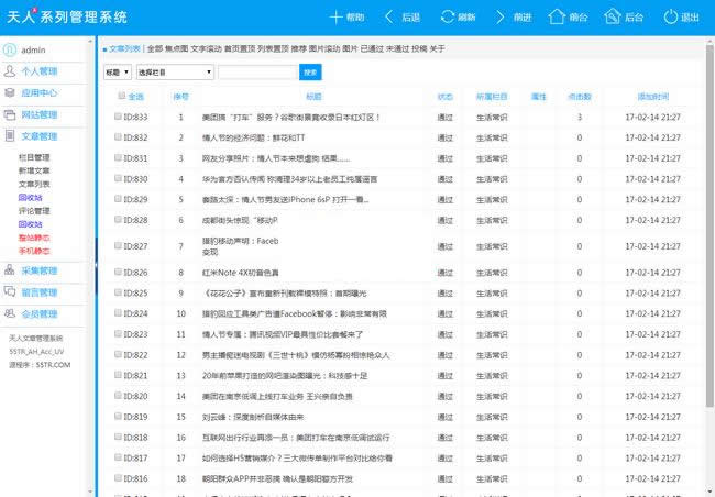 14、留言管理,功能同评论管理。