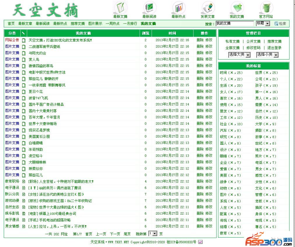 天空文摘,打造SEO优化的文章发布系统!