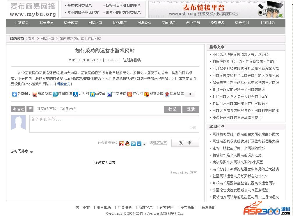 麦布简易网摘是专门为个人站长制作的一个网摘程序,前台主要是分类显示功能,后台有手工添加、修改、删除以及分类的管理,功能比较简单,非常适合二次开发,本系统秉承麦布程序的一贯风格,特点速度快、占用服务器资源小、扩展功能强大,能方便快捷地建立您的网摘。另外本程序在www.54admin.net上做了半年多的测试和改进,无论在界面上还是程序上都已经比较完善。本程序为免费程序,没有收费版本,特此申明,仅防受骗。