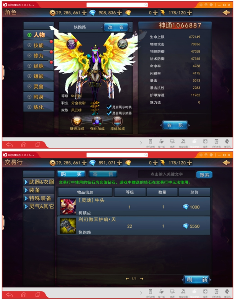 坐骑外观炫酷,搭配最高阶翅膀。宛如天神下凡