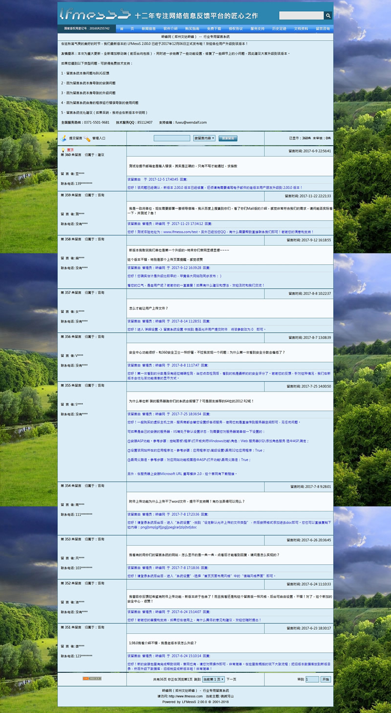 LFMessS 岭峰网行业专用留言系统 v3.10.0.F 更新日志