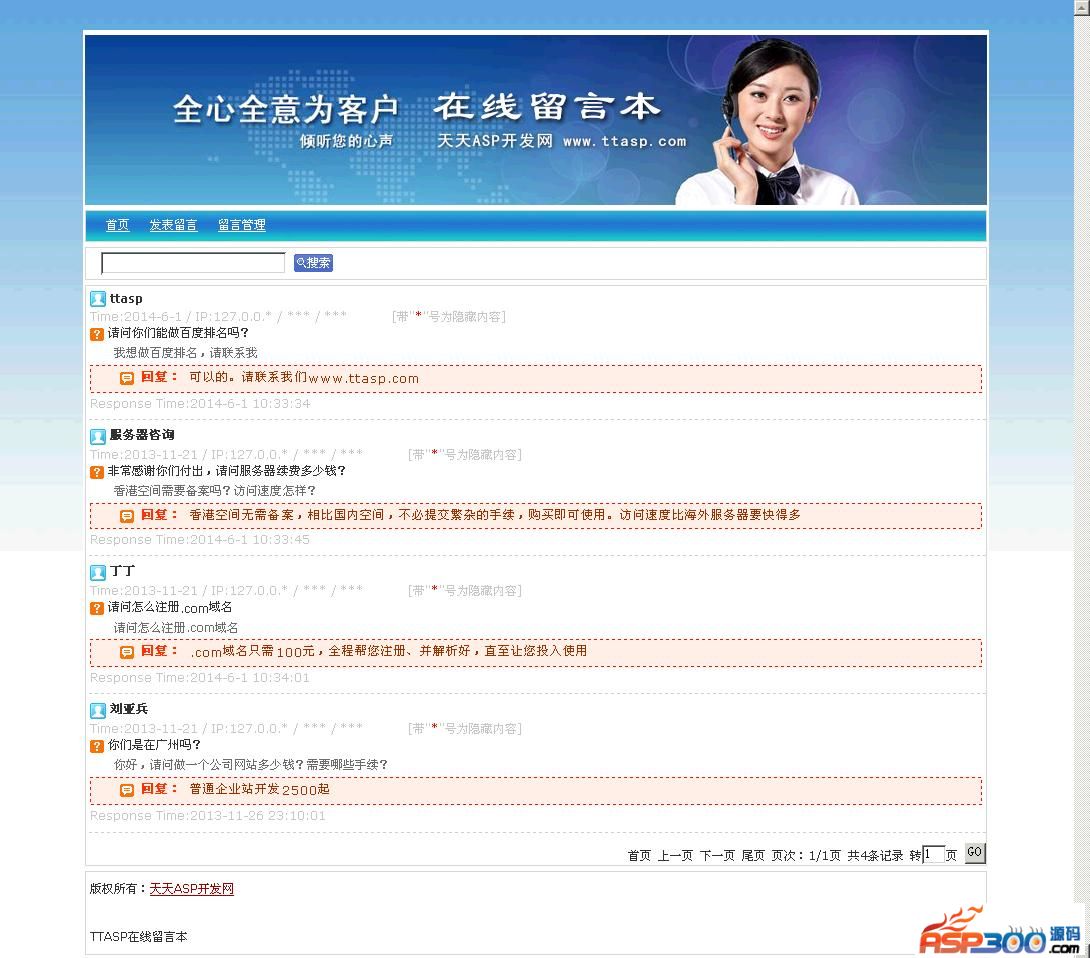 TTASP留言系统当前版本 v2.0运行环境:ASP+ACCESS