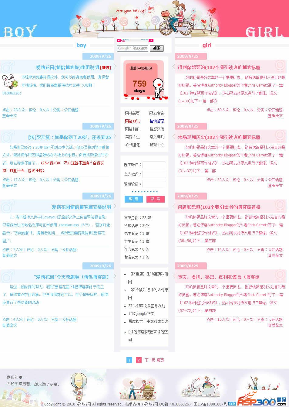 爱情花园情侣博客优化改进版 6.28 更新日志: