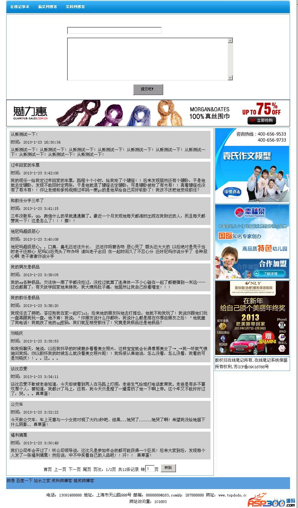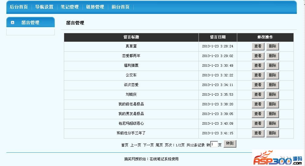 笔记管理:管理留言,管理员回复等;
