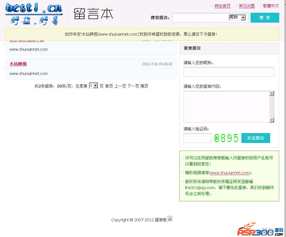 好益留言板是站长花近一个小时时间潜心编写的,现在免费放给大家使用了,可以搜索用户名找到自己的留言。