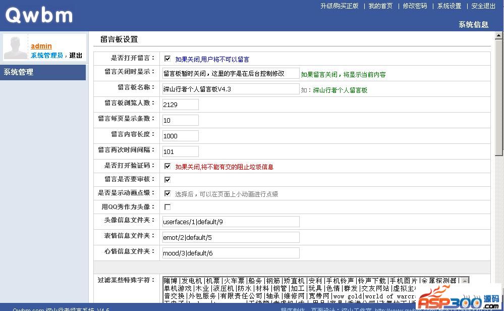 2.管理员可以后台设置留言本,配置留言本名称,留言本标题,以及更换管理员密码。