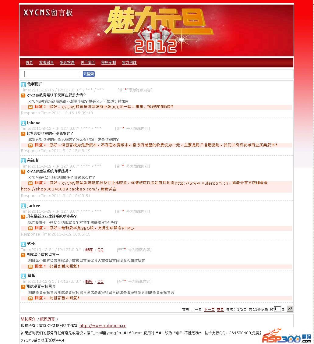 此版本完全免费,没有任何功能限制,不提供技术支持。不要相信任何网络上关于XYCMS留言板收费版本。唯一收取一元的是官方店铺里象征性的用户捐款对我们的支持!谨防上当受骗!