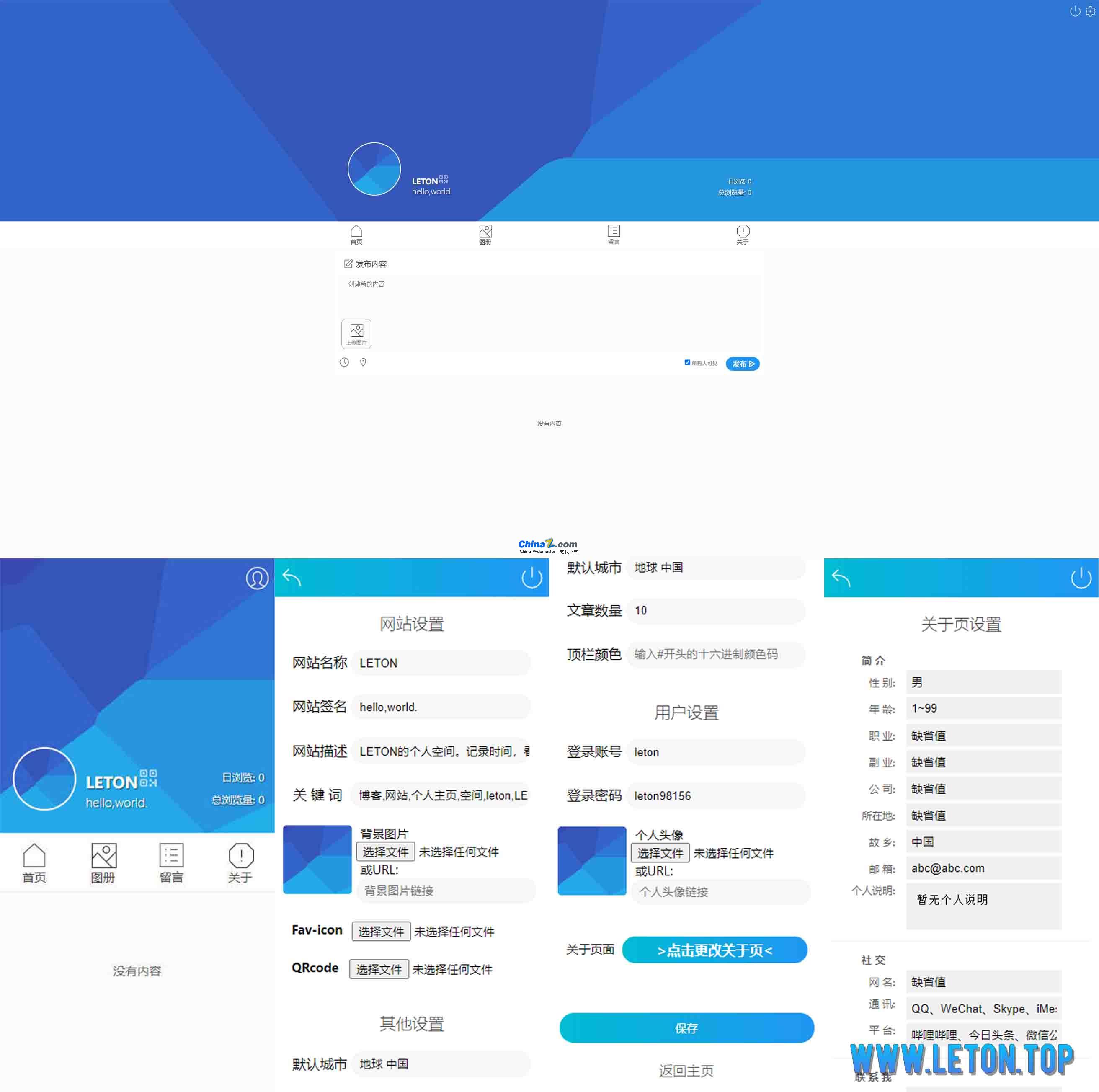 LETON个人空间,作者在闲暇之余写了一款日志加留言的网站源码,LETON 个人空间 使用 HTML CSS JAVASCRIPT PHP MYSQL 开发的以记录日志、日记为主要功能的WEB网站程序。功能快捷、界面简单、使用方便,登陆后即可发布你的图文日志。打造一个简单的web程序,开箱即用,方便快捷。支持作者只需一瓶脉动即可获取永久使用。
