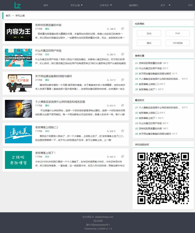 老张博客系统LzCMS是用ThinkPHP+Layui框架做的,简单方便,没复杂的功能,就是一个简单博客系统。老张博客系统LzCMS 1.1.3 更新日志:2017-08-071.单页模型页面描述内容调整;2.搜狐畅言兼容http和https;3.IIS伪静态隐藏index.php配置; 4.修复QQ登录无效问题。