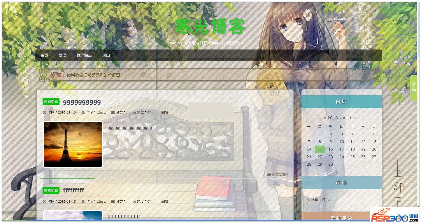 寒光唯美式是一个清新唯美的emlog博客模板,采用全局pjax+响应式布局。