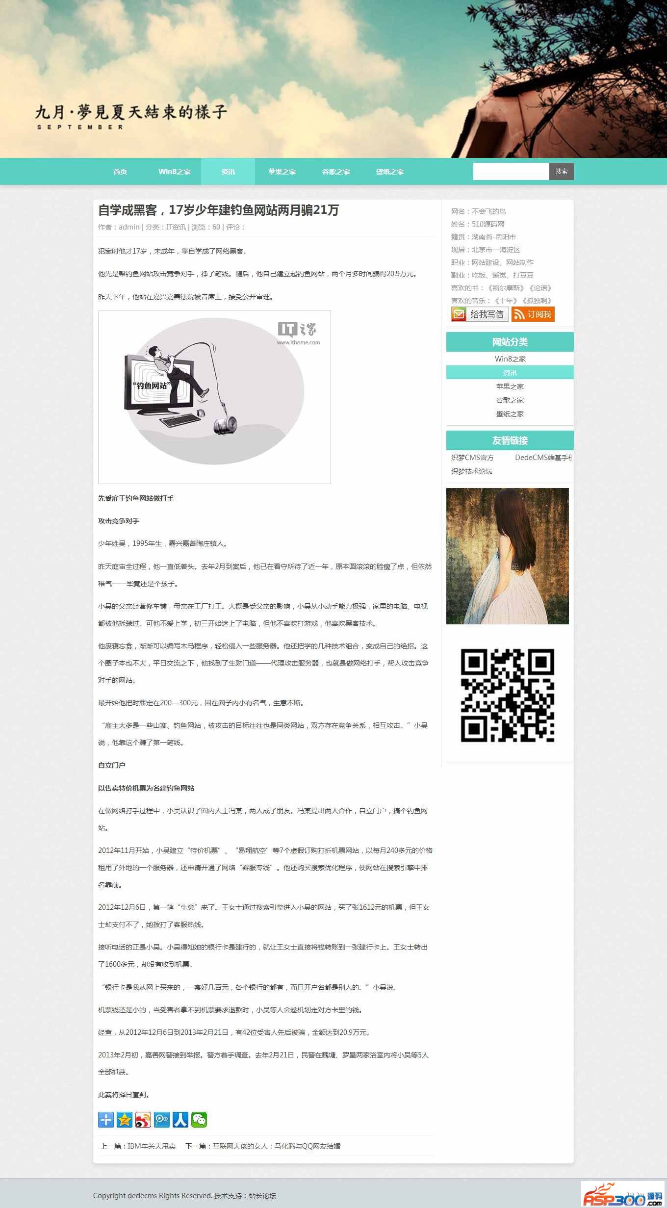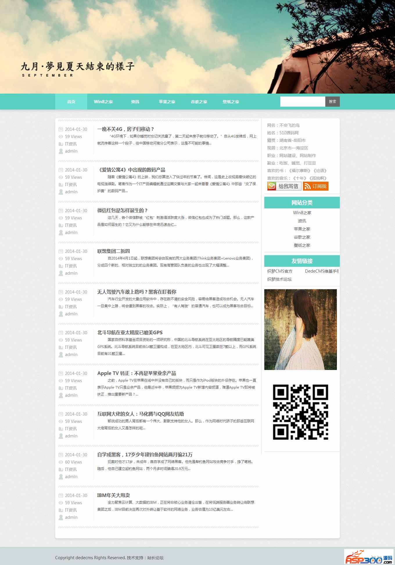 源码名称:浅蓝色小清新个人博客织梦网站源码