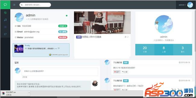 程序采用php和mysql组合,响应速度更快,支持文字,音乐,视频,图片发布。