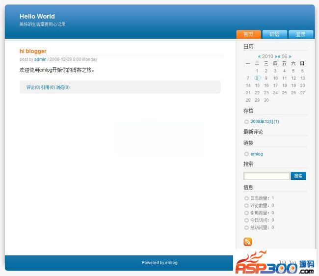 emlog是"every memory log"的简称,意即:点滴记忆。它是一款基于PHP和MySQL平台的功能强大的个人博客系统(blog)。致力于为您提供快速、稳定,且在使用上又极其简单、舒适的博客服务。