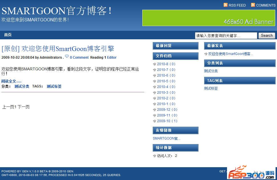 smartgoon是一个开源的博客程序。程序使用流行的PHP+MYSQL架构而成,在保证运行效率的同时安全性和易用性也得到了保障。后台的数据库分析和数据备份功能可以保证数据的运行安全;自定义导航和快速创建分类功能也在大大提高了程序的易用性。模板使用SMARTY引擎,方便好用。特别是前台模板只有几个小文件组成,十分简单好用。