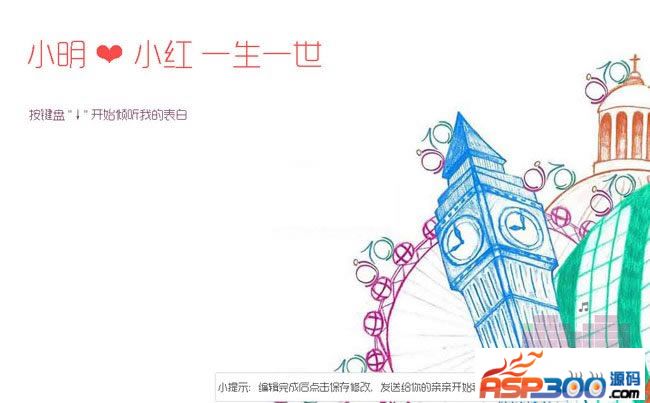 注:这是一个自动生成表白页面的程序,模版由jianghongfei.com.cn原创,麦葱(www.yuxiaoxi.com)做二次开发,仅限娱乐,不得用于商业用途!