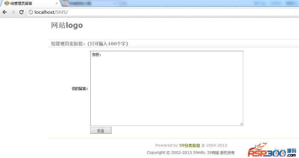 发布内容限制在100个汉字,大家可以根据情况自己修改,index.php没有动态代码可以改成index.html,大家也可以把此代码镶入至任何其他程序,另外对于发布数量和发布时间间隔或者短信内容合法与否暂未限制,本人亦能力有限,大家也可以自由发挥修改,如果我有更新会再发上来,现阶段现就这么多。