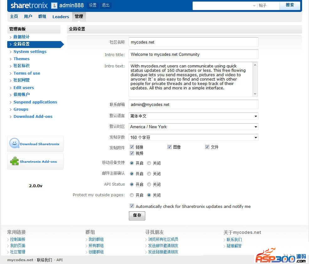 >Sharetronix是一款免费开源微博客系统,多国语言版,默认是英文,后台设置可以选择简体或繁体中文,共支持包括简繁中文在内的21种语言。