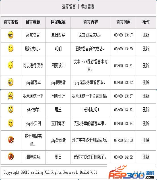 1个.php即可实现对留言本的显示,添加与删除,按照一定规则存储到.txt文本中,利用了数组将留言内容读取出来,整个留言板程序只有不到7K,源码也没多少行,还可以实现留言本的表情显示,主要是利用PHP的文件操作函数实现留言本程序的操作,页面非常美观,可作为一个小型的留言本研究使用。