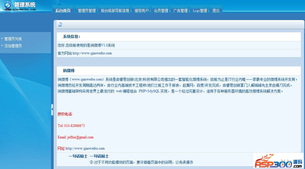 系统融入了ucenterAPI接口,让其他系统更加容易整合到俏微博中来,从而方便统一会员与管理。