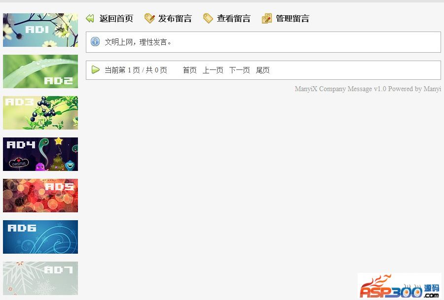 ManyiX Company Message(简称MCM)是一套企业留言本程序。尽管她不是很完美,但你的支持就是最好的增强剂。希望您会喜欢ManyiX Company Message,并继续支持与关注ManyiX系列程序。