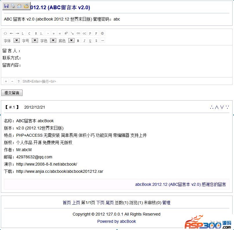 PHP+ACCESS 无需安装 简单易用 体积小巧 功能实用 带编辑器 支持上传