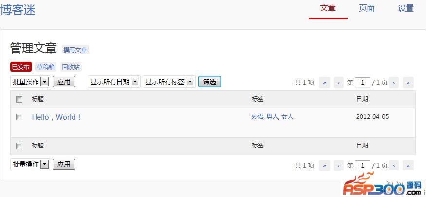 从功能上来说,“博客迷”分为“文章”和“页面”。