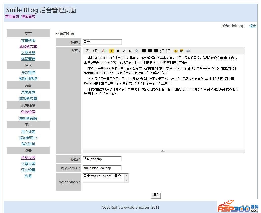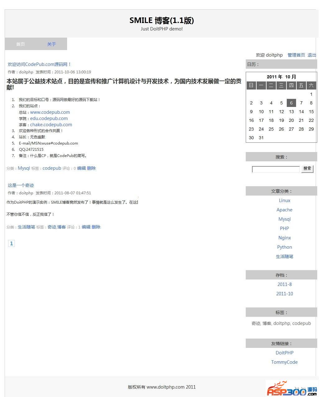 DoitPHP1.1-1.2演示实例 SmileBlog