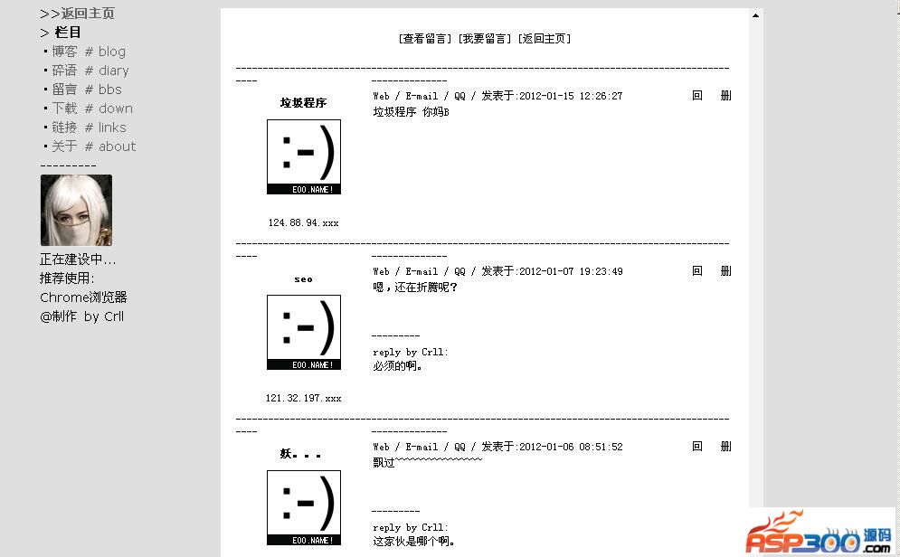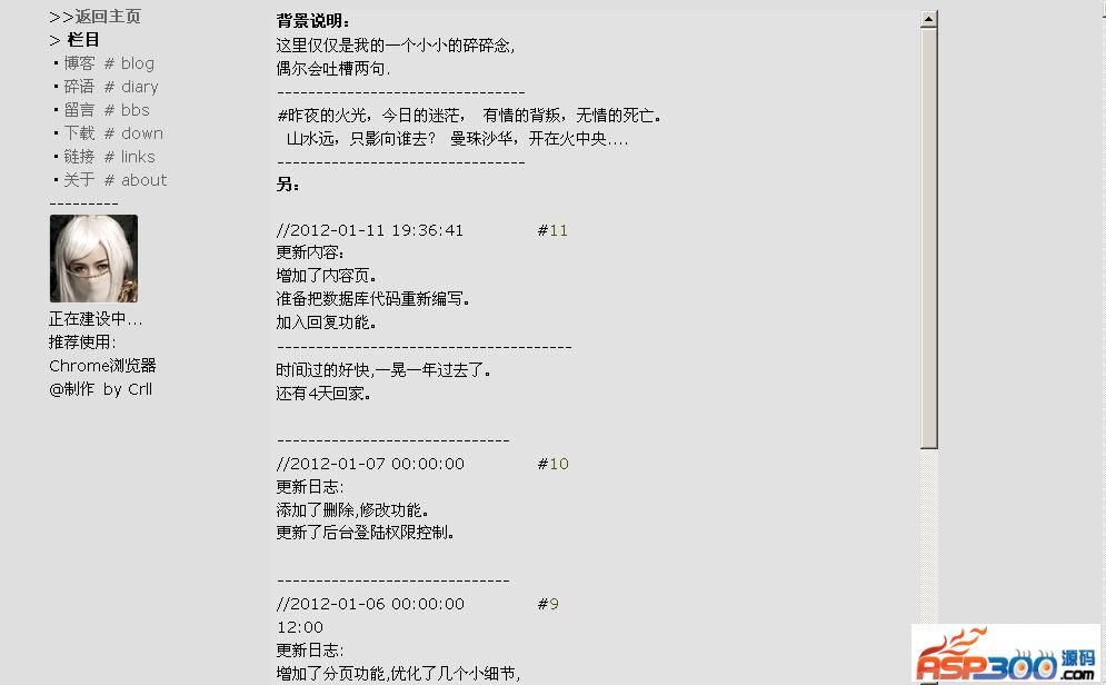 这个碎碎念的小程序,是因为我刚开始学习php,所以写出来的,因为不是很学css,因此美化不是很好。由于我是新手,所以代码不是写的很规范,很大家谅解。eoo!碎碎念 v0.2更新:集成了KindEditor编辑器eoo!碎碎念使用:首先把[导入数据库.sql]导入到数据库中.然后修改[conn.php]里面的数据库连接信息。最后上传程序.后台登陆地址为:eoo_login.php帐号:admin 密码:admin更多修改请看下载文件内使用说明.txt。后台有修改密码功能。