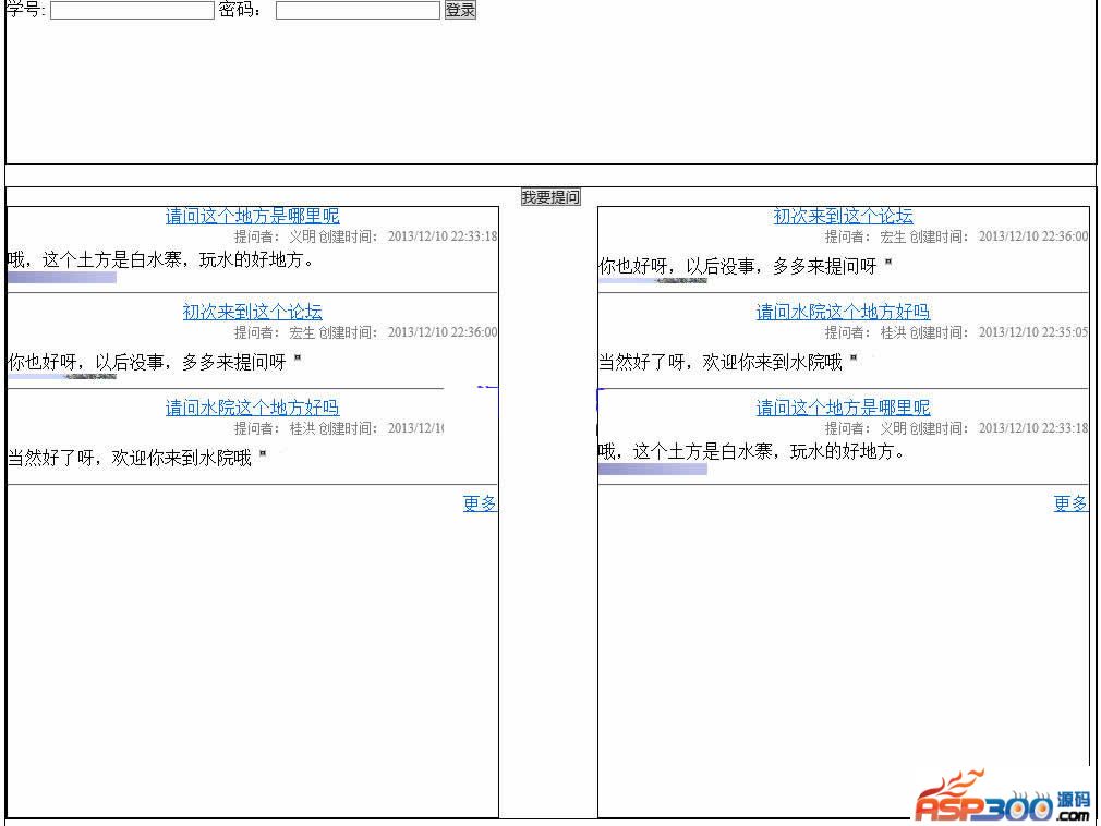 简单在线答疑系统源码,功能比较简单,前台,可以查看问题,登录后可以提问。