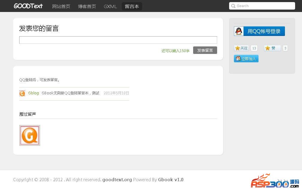 GBook无刷新QQ登陆留言本 – GoodText.org留言本asp.net版