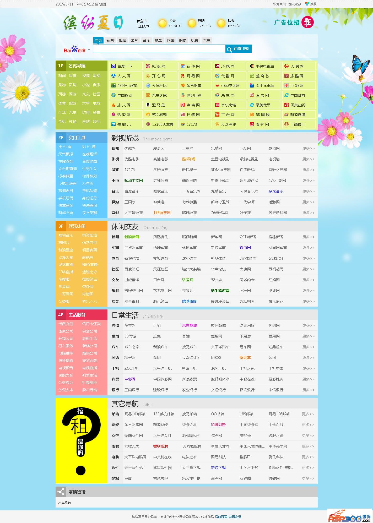 缤纷夏日网址导航源码 更新记录:2016.05.22 增加了多个专栏,清除部分失效网址