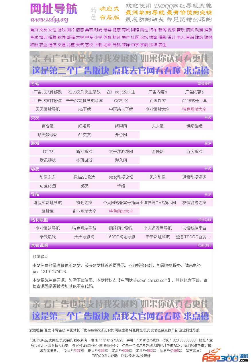 5、TSDQQ响应式布局网址导航系统,是一套免费开源的ASP网站系统。适合快速建立网址导航网站的各位站长使用。