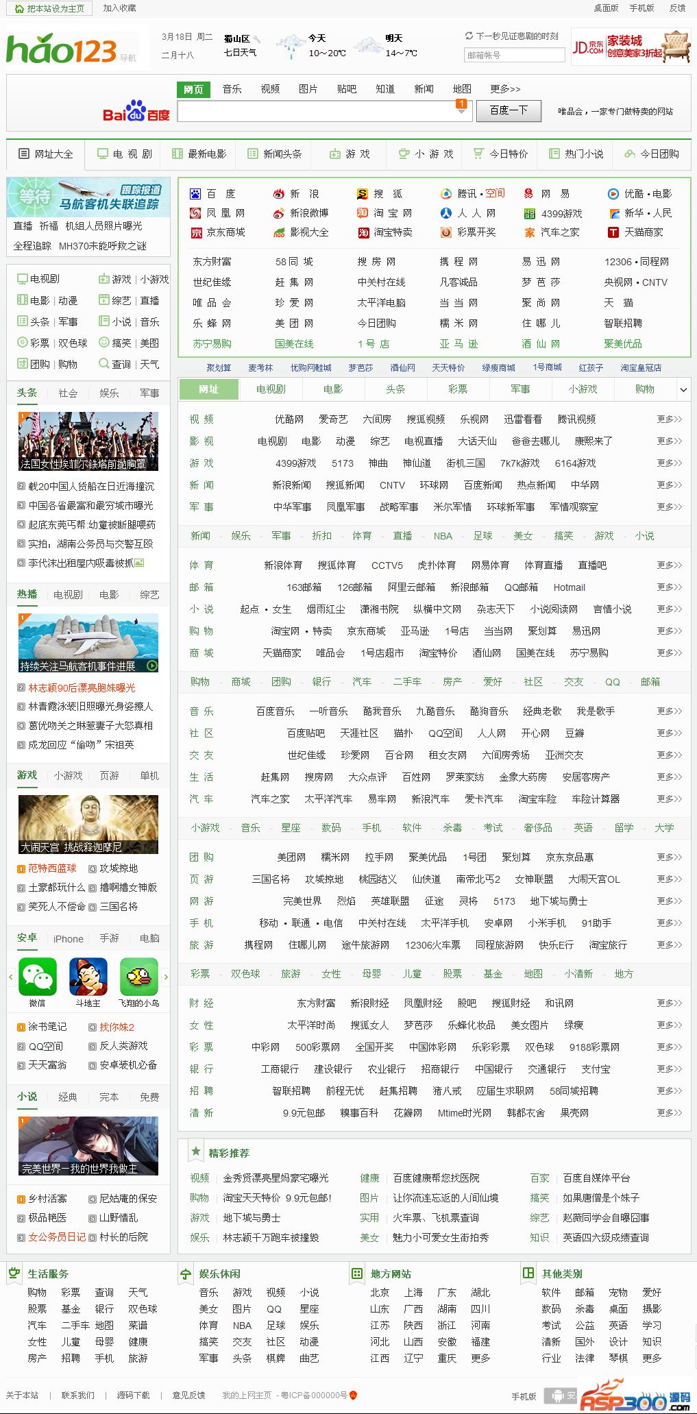hao123,创建于1999年5月,是中国最早的上网导航站点,经过10余年的发展,已成为亿万用户上网的第一站、中文上网导航的第一品牌,更成为后期网址站争相模仿的对象。