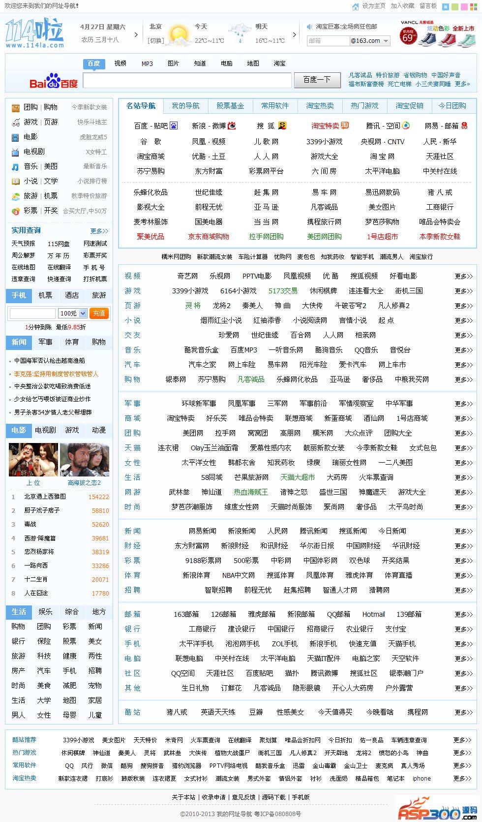 自从114la宣布源码不再更新,很多网友都为此沮丧,苦于四处寻找114la源码,今在2013新版之际补上114la源码一枚,这次改版界面非常大气,希望大家喜欢。
