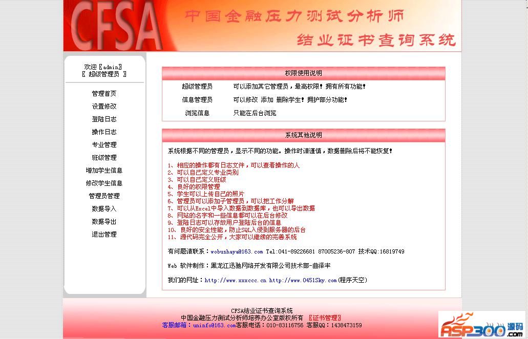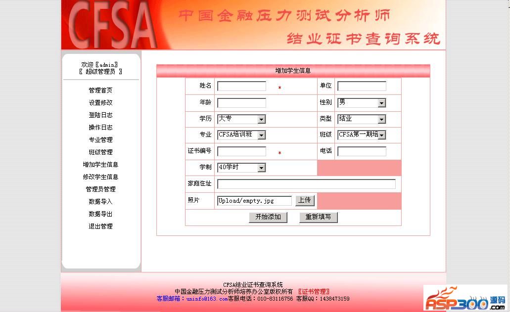 CFSA毕业证书查询系统根据0451sky毕业证书查询系统改版而来 并简单做了下美工,修改了图片上传大小限制,去除了留言功能。