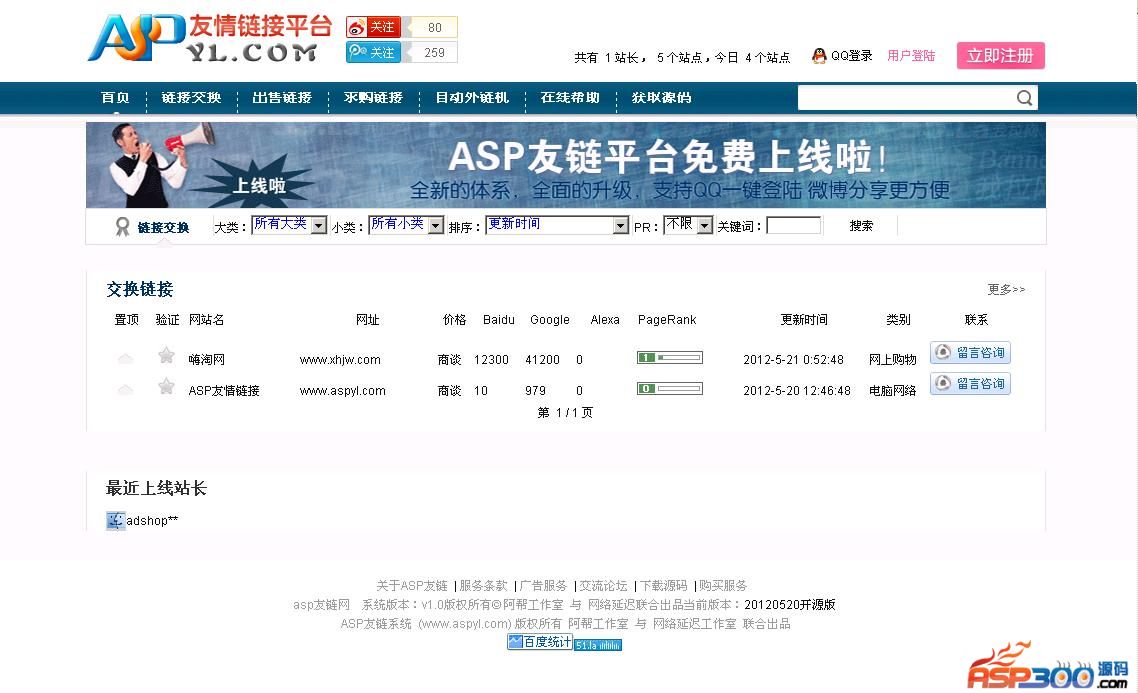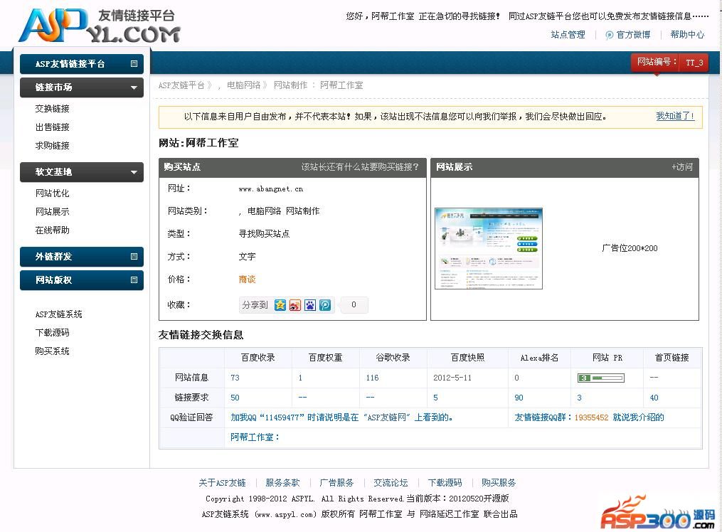7,网站管理:审核站点,全部站点,交换站点,求购站点,出售站点,