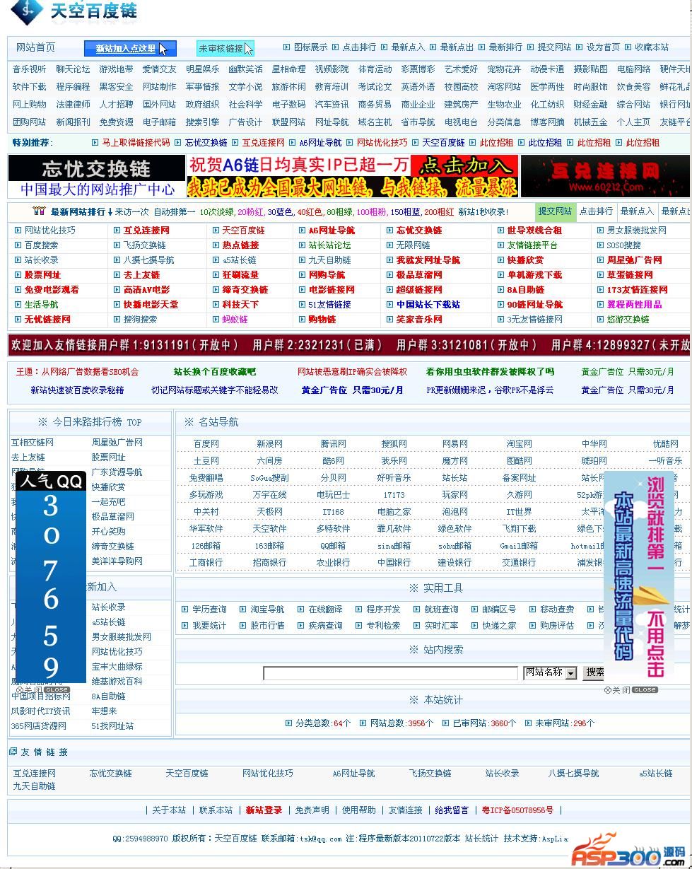 1.申请加入免费友情链接网的网站按最后点进的时间排序首页和分类显示链接,