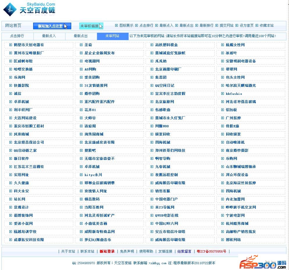 9.常用维护共三项,删除所有未审核的网站,开通所有有点入的网站,删除所有重复提交的网站
