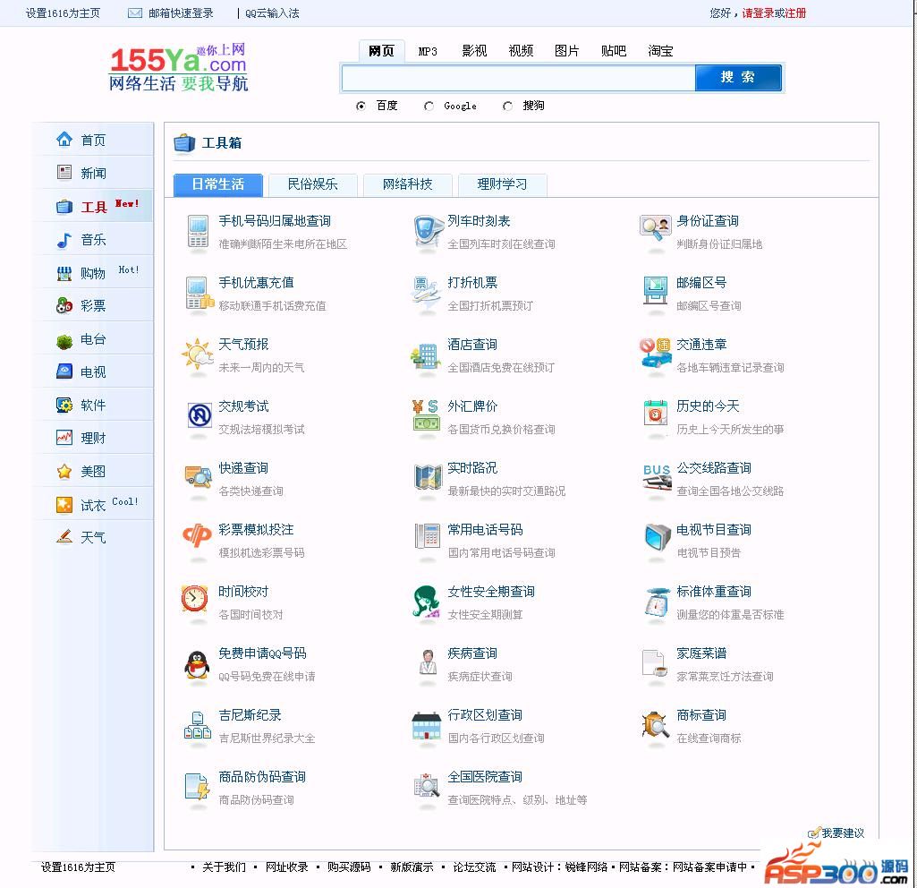 6.聚合常见的搜索引擎,以及平时常用的小工具。