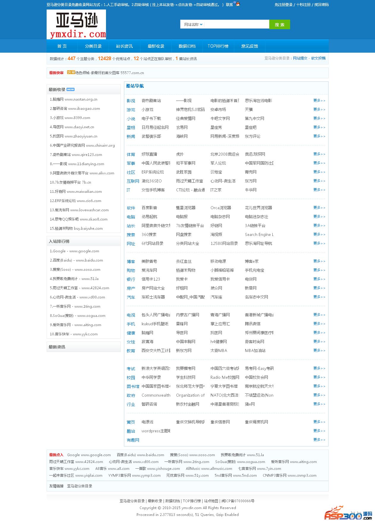 亚马逊分类目录1.0版本程序采用35分类目录的基础上二次开发升级,在排版上做了较大的改变,网站程序为PHP+MYSQL,该版本亚马逊分类目录为v1.0免费版。网站用户支持QQ登录,网站系统支持伪静态。该程序适合用作网站分类目录、网站收录、网址导航等。robot.txt文件做了禁止所有搜搜索引擎收录,用这套程序的朋友一定要修改一下。网站演示:http://www.ymxdir.com