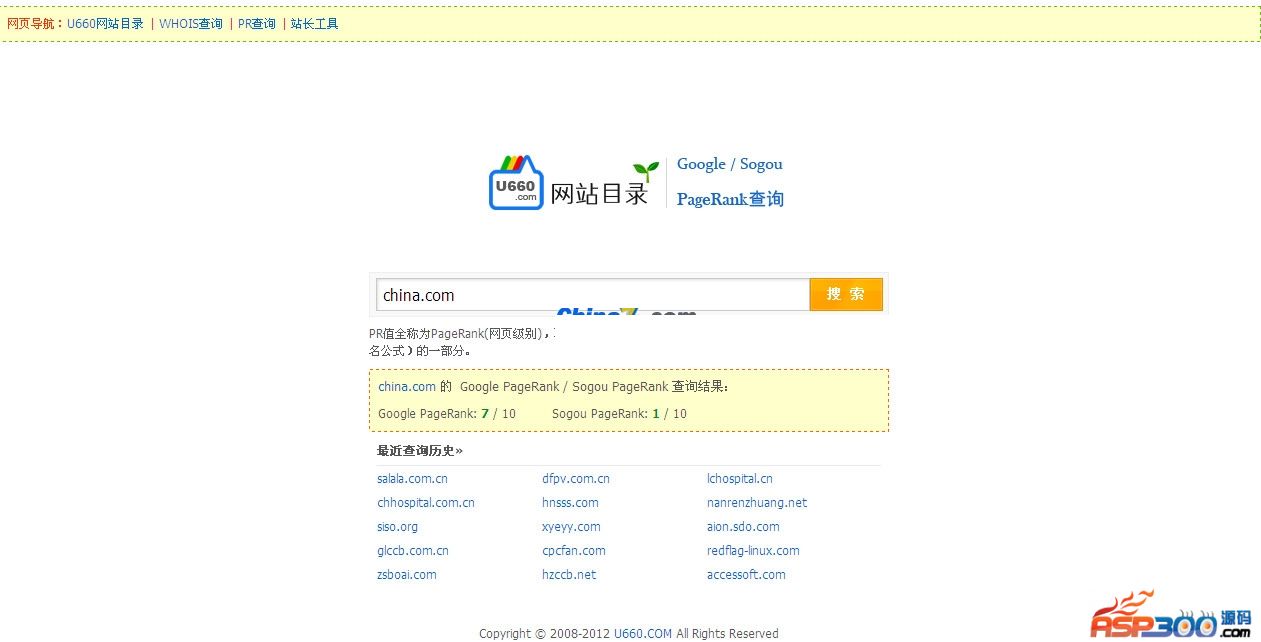 U660网独立分出的PR查询程序,程序简洁,直接传到PHP空间即可使用,软件调用的是google服务器的数据,绝对最新最快,欢迎使用。