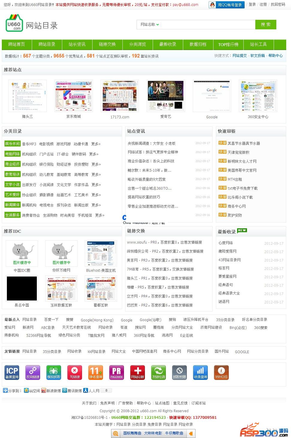 U660网站目录是基于35dir内枋源码2.3版进行了修正并精仿一套绿色模板 带目录分类数据近万条。源码页面已经做了SEO,病毒式收录,拿来可直接开垃圾站,流量站首选,可生成sitemap,带伪静态功能。已修正一些bug.后续会不断修正。第一步:删除\\data\\install.lock文件第二步:安装程序http://你的域名/install第三步:进入后台http://你的域名/admin/login.php用户名:admin@u660.com密码:123456如需要网站数据进入第四步第四步:数据库管理—恢复数据库(近万条数据)如需帮助安装,联系QQ:1377009581
