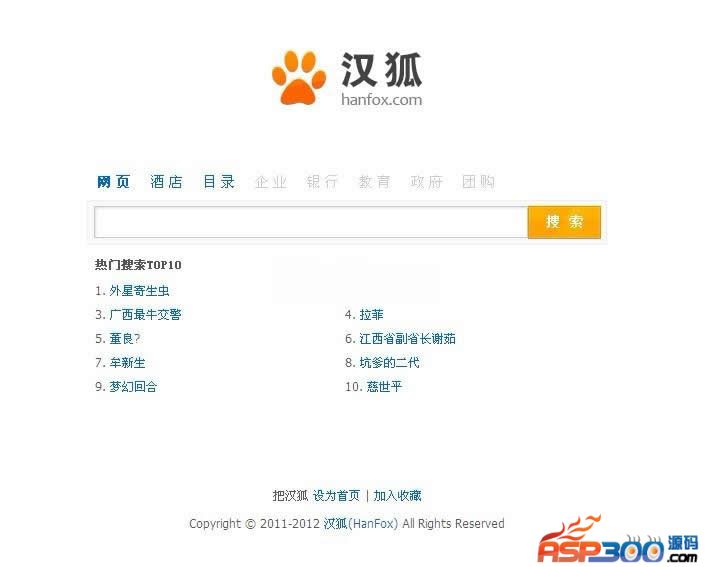 汉狐搜索引擎(Hanfox Search Engine)源码,安装简单,易于配置,支持搜索提示,显示最新热门搜索词,支持自定义网站广告。